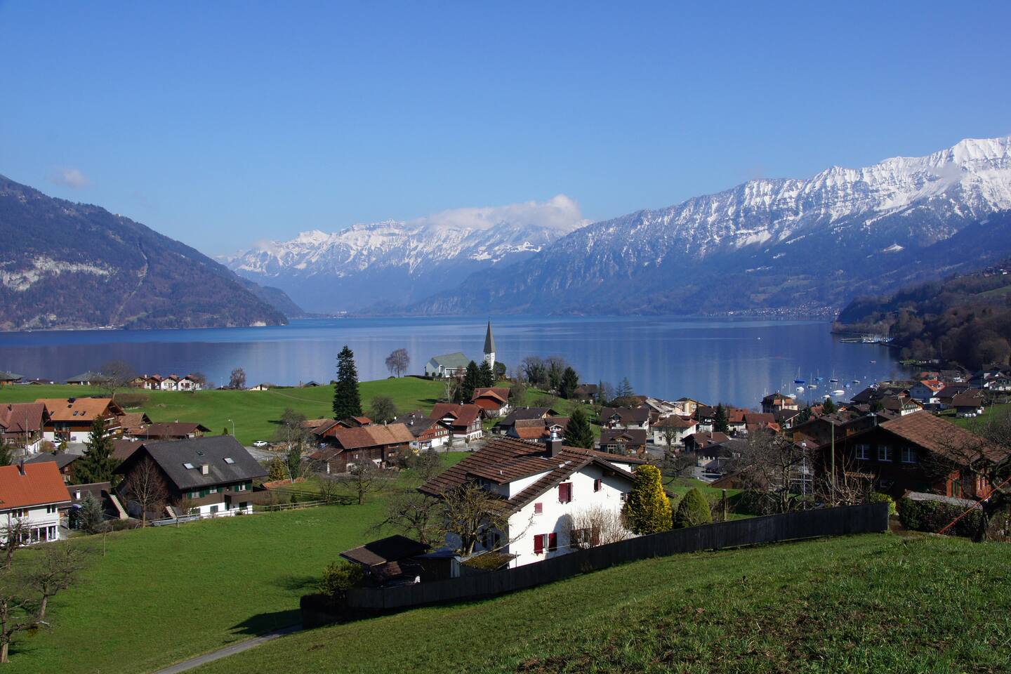 Willkommen in unserem geräumigen Apartment, das alles bietet was du für einen tollen Aufenthalt am See brauchst: → 10Minuten Autofahrt nach Interlaken → Kingsize-Bett → Smart-TV → NESPRESSO Kaffee →Raclette und Fondue Ofen → Küche → Terrasse → gratis Parkplatz direkt vor dem Haus