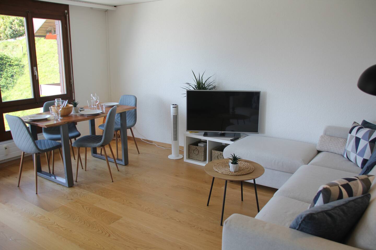 Du wirst den traumhaften Ausblick aus dem dritten Stock lieben – perfekt, um den Tag mit einem Nespresso-Kaffee auf dem Balkon zu beginnen und die herrliche Aussicht zu genießen. Das Apartment ist hochwertig und geschmackvoll eingerichtet, mit einem großzügigen Kingsize-Bett (1,80 m breit), einem Smart-TV und einer voll ausgestatteten Küchenzeile mit Kochplatten, Kühlschrank und allem, was du für deinen Aufenthalt brauchst. Das neu renovierte Badezimmer bietet sowohl eine Dusche als auch eine Badewanne für entspannte Momente. Frische Handtücher und alle wichtigen Bade-Accessoires sind natürlich inklusive. Für ein authentisches Schweizer Erlebnis kannst du während deines Aufenthalts Raclette genießen – wir stellen ein Raclette-Gerät bereit, damit du dieses traditionelle Gericht in vollen Zügen auskosten kannst. Die Lage des Apartments ist ideal: Direkt am See gelegen, lädt die Umgebung zu erholsamen Spaziergängen und Badeurlauben ein. Das charmante Interlaken ist nur 20 Minuten entfernt und bietet zahlreiche Freizeitmöglichkeiten wie Wandern, Bootsfahrten oder kulinarische Erlebnisse. Auch Skigebiete sind in der Nähe und schnell erreichbar – perfekt für einen rundum gelungenen Urlaub!