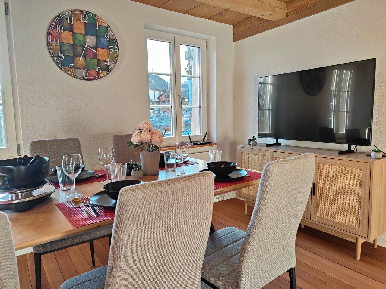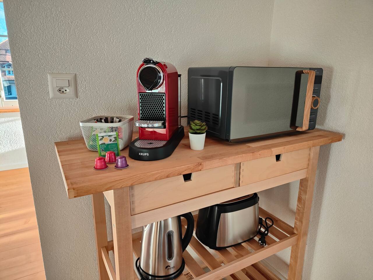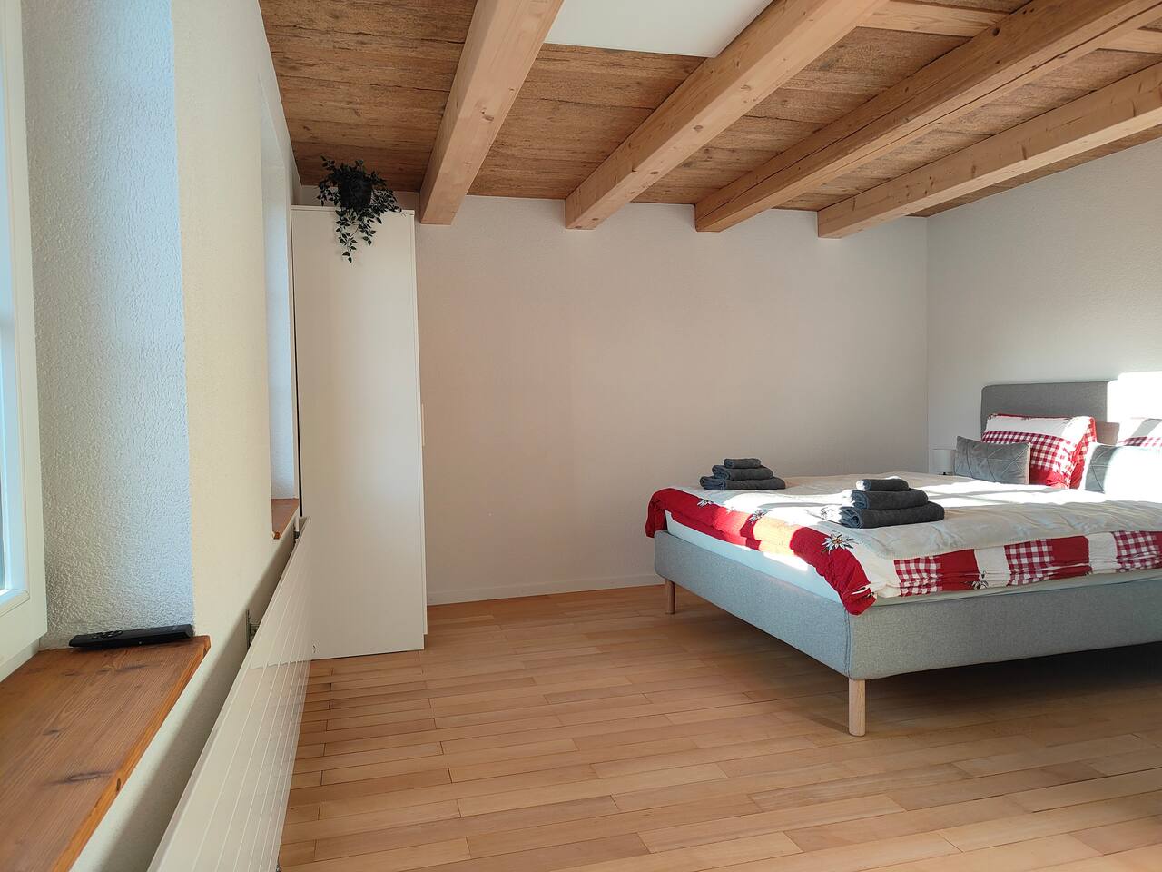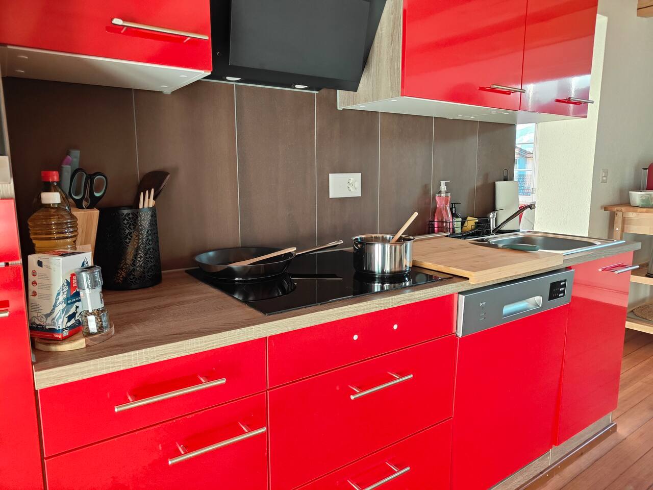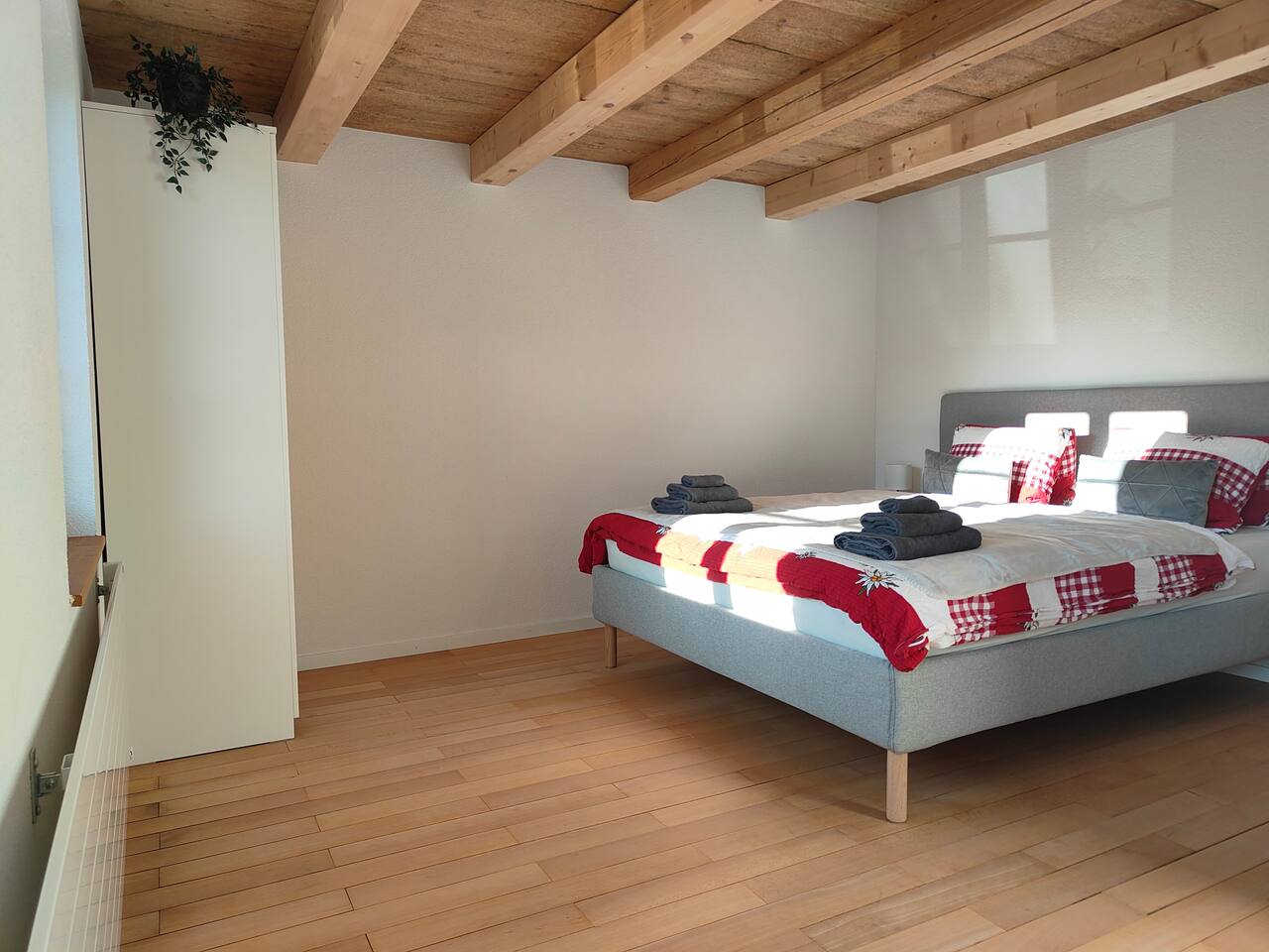 Du wirst den Ausblick lieben und kannst deinen Tag mit einem Nespresso-Kaffee auf dem Balkon starten, wie keinen anderen. Das Apartment ist sehr hochwertig eingerichtet und verfügt über ein bequemes Kingsize-Bett (1,80 breit), Queensize-Bett (1,60m breit) , Sofa-Bett, einen Smart-TV und einer voll ausgestatteten Küche mit Herdplatten, Kühlschrank und allem was man braucht. Das neu renovierte Badezimmer verfügt über eine Dusche und einer Waschmashine sowie ein Trockner. Selbstverständlich stellen wir frische Handtücher und Badezimmer-Essentials bereit. Leider fehlt im Moment der Schlüssel zür Badzimmertüre und wir schauen wie wir ihn ersetzen können. Die Lage des Apartments ist ideal: Du kannst dich auf Ausflüge nach Interlaken, Spaziergänge und Skiferien im Berner Oberland freuen.