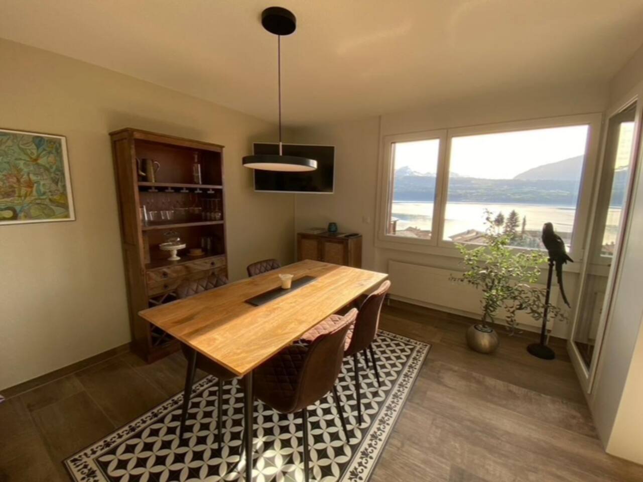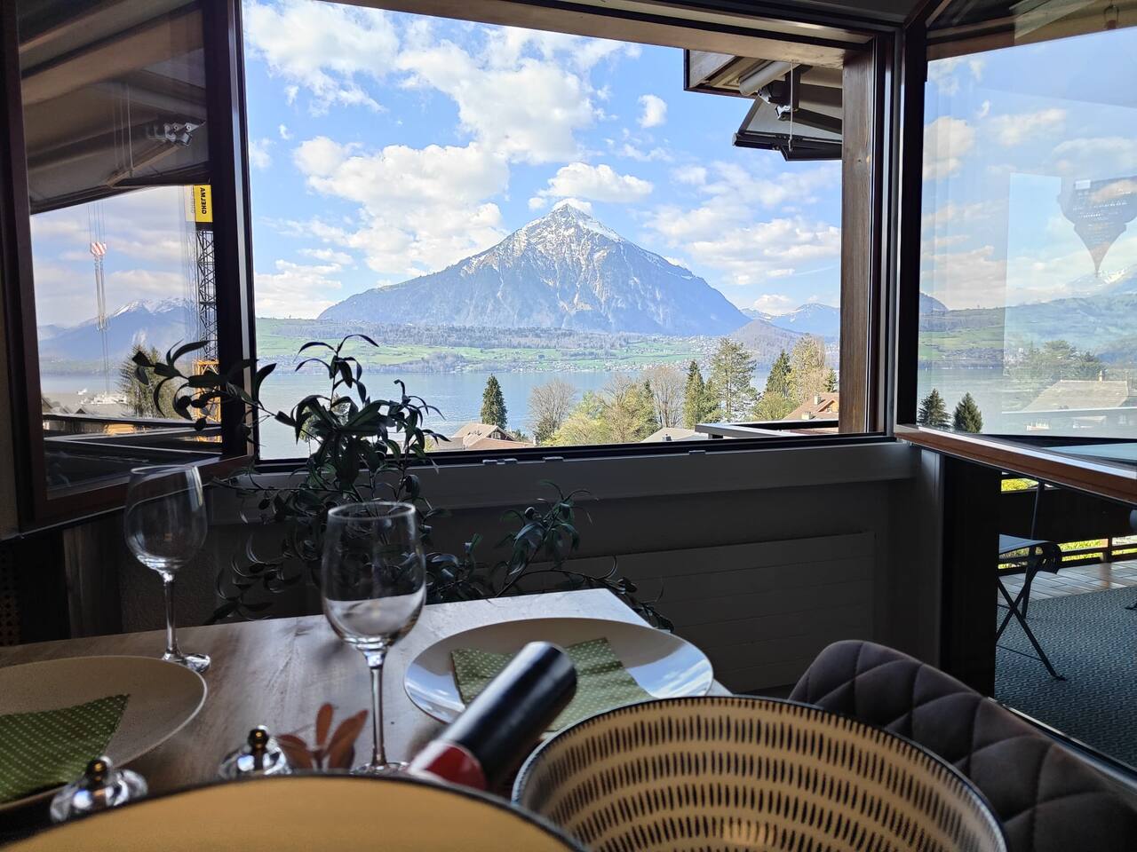 Beginne deinen Tag mit einem Nespresso-Kaffee auf dem Balkon und genieße die wunderschöne Aussicht. Oder nimm dein Frühstück mit über die Straße zum Seezugang und starte dort entspannt in den Tag. Das hochwertig eingerichtete Apartment verfügt über ein bequemes Doppelbett (1,80 m breit), einen Smart-TV und eine voll ausgestattete Küche mit Herd, Kühlschrank und allem, was du für deinen Aufenthalt brauchst. Das frisch renovierte Badezimmer bietet eine moderne Dusche. Handtücher und Badeutensilien stehen für dich bereit. Für ein authentisches Schweizer Erlebnis kannst du Raclette oder Fondue genießen – die passenden Geräte sind vorhanden. Die Lage ist ideal für Badeferien, entspannte Spaziergänge am See und Ausflüge in die Umgebung. → Beatushöhlen (5 Min. mit dem Auto): Erkunde die beeindruckenden Tropfsteinhöhlen und erfahre mehr über die Legende des heiligen Beatus. → Harder Kulm (15 Min. mit dem Auto + 10 Min. Standseilbahn): Genieße die spektakuläre Aussicht auf Interlaken, den Thuner- und Brienzersee.