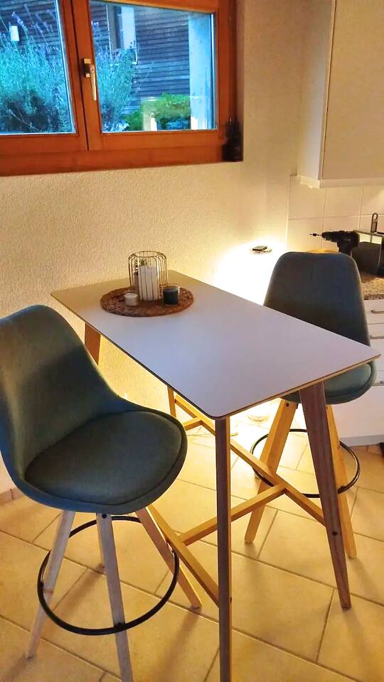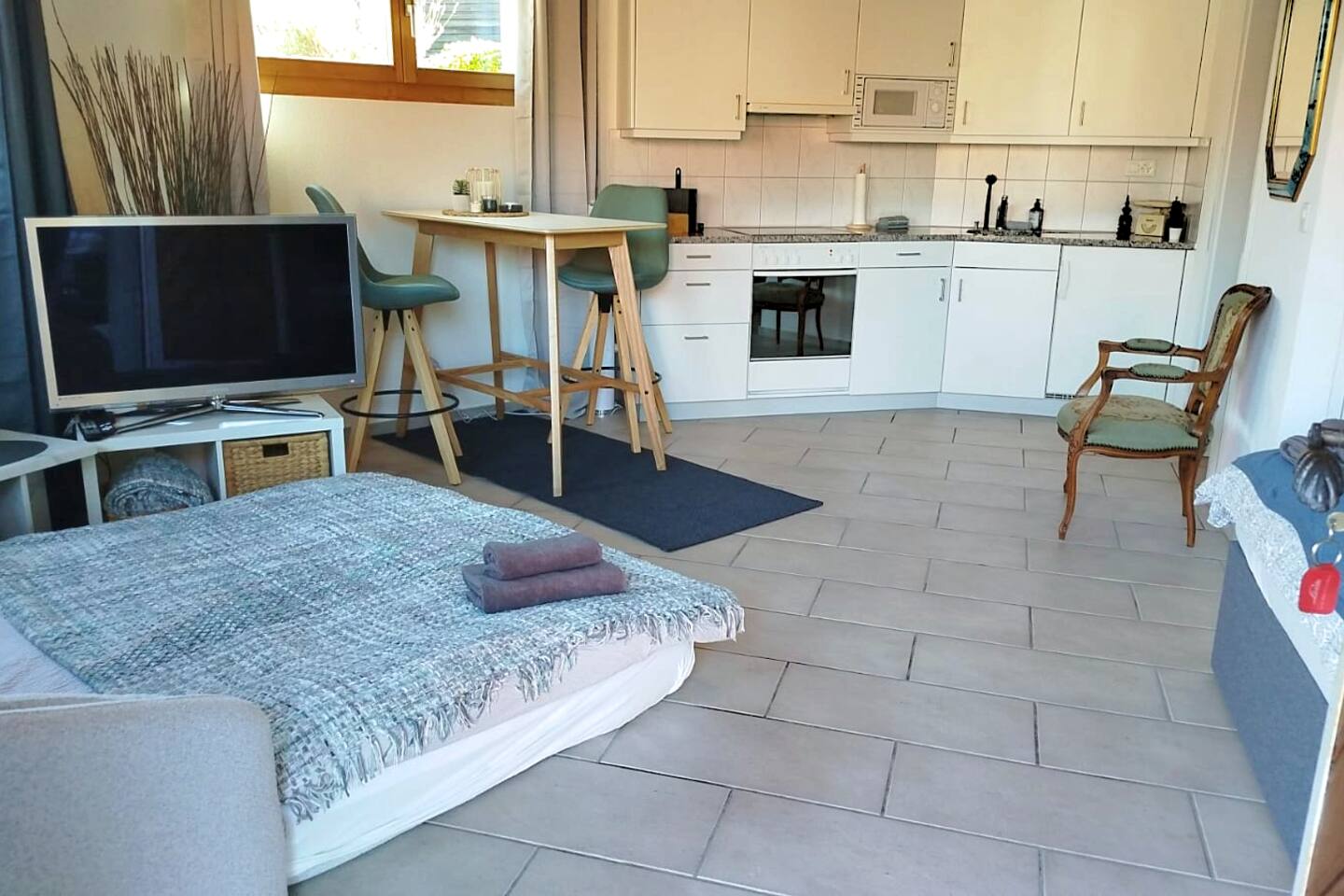 Starte deinen Tag entspannt mit einem Nespresso-Kaffee auf der Terrasse und genieße die Ruhe von Faulensee – der perfekte Rückzugsort nur 20 Minuten von Interlaken entfernt, dem Herzstück des Berner Oberlands. Das Studio bietet dir alles, was du für einen erholsamen Aufenthalt brauchst: ein bequemes Kingsize-Bett (1,80 m breit), einen großen Smart-TV für entspannte Abende und eine voll ausgestattete Küche mit Herdplatten, Kühlschrank und allen wichtigen Utensilien. Das Badezimmer verfügt über eine moderne Dusche. Frische Handtücher und Bad-Essentials sind natürlich inklusive. Für ein echtes Schweizer Erlebnis kannst du mit dem bereitgestellten Raclette-Gerät ein typisches Gericht zubereiten und genießen. Die Umgebung: Interlaken: Nur eine kurze Autofahrt entfernt, bietet es unzählige Aktivitäten wie Bootstouren auf dem Brienzer- und Thunersee, Paragliding oder Ausflüge zur Jungfrau Region. Iseltwald: Besuche die berühmte CLOY-Pier (Crash Landing on You) und genieße die atemberaubende Kulisse des Brienzersees. Wanderungen und Natur: Der Thunersee ist nur etwa 10 Gehminuten entfernt, ideal für einen gemütlichen Spaziergang oder einen Sprung ins Wasser. Dieses Studio ist der ideale Ausgangspunkt, um das Beste des Berner Oberlands zu entdecken!