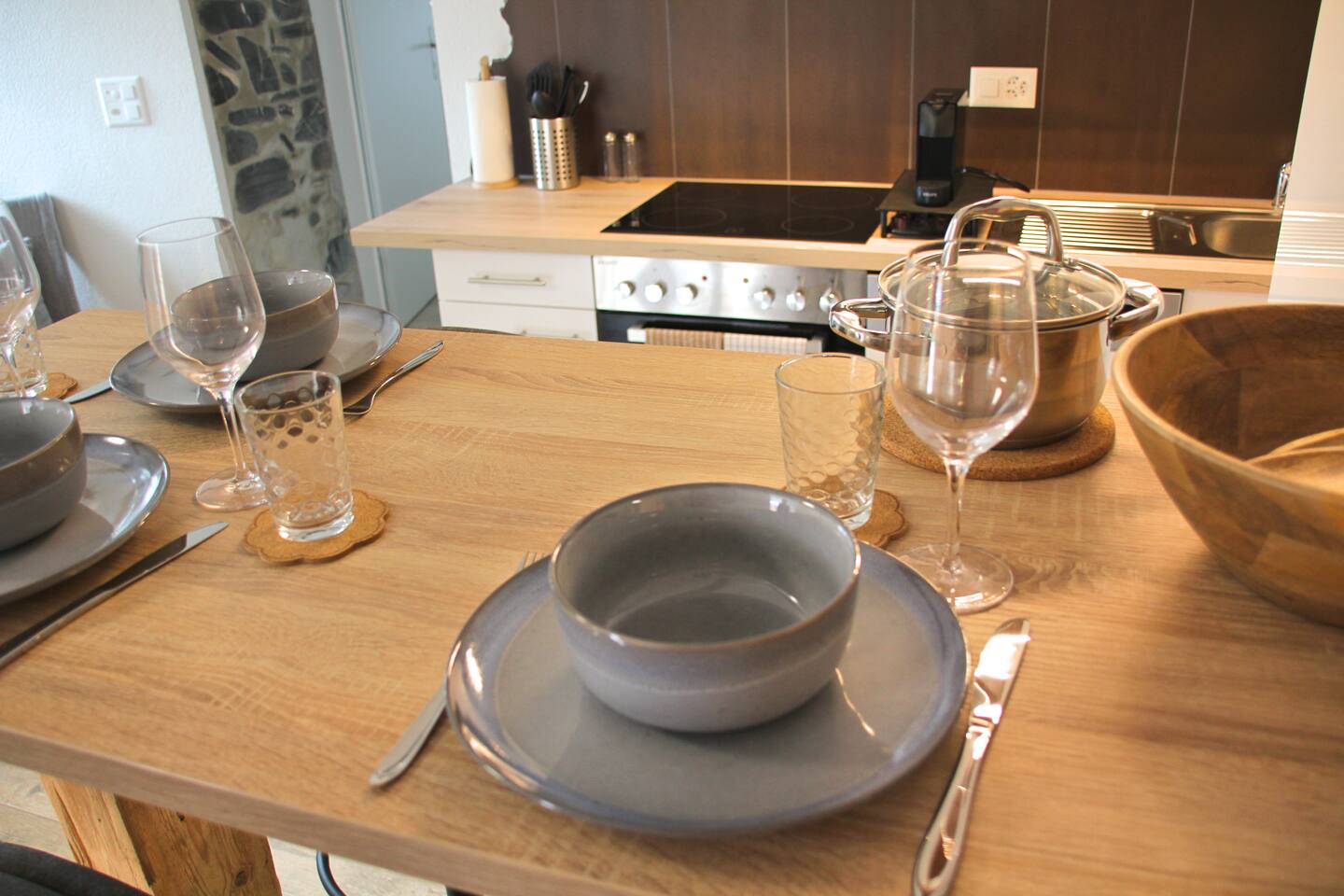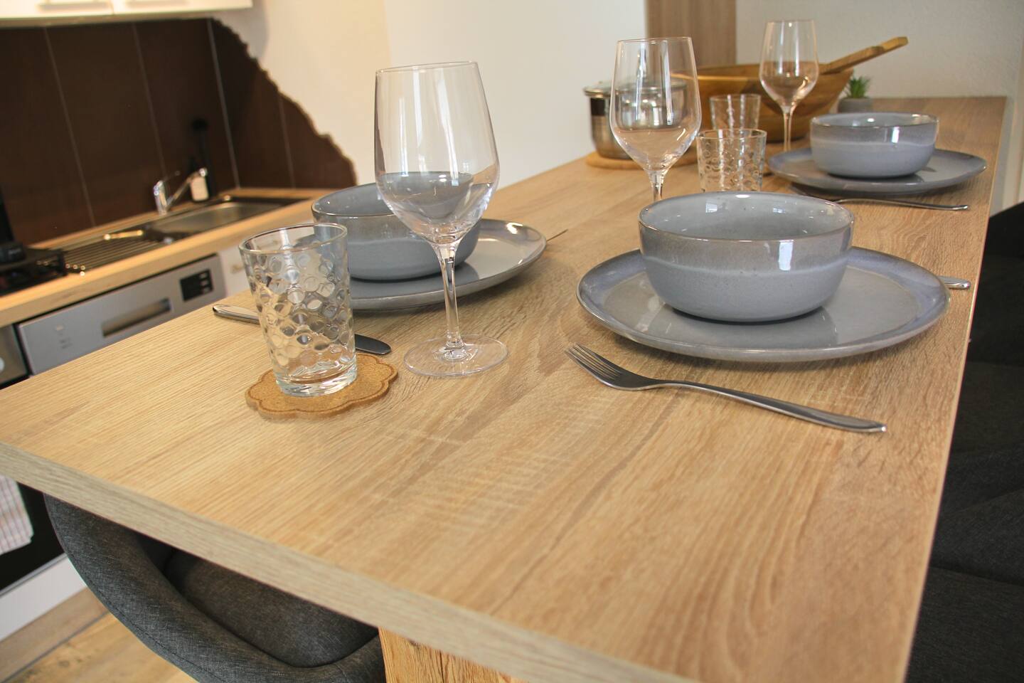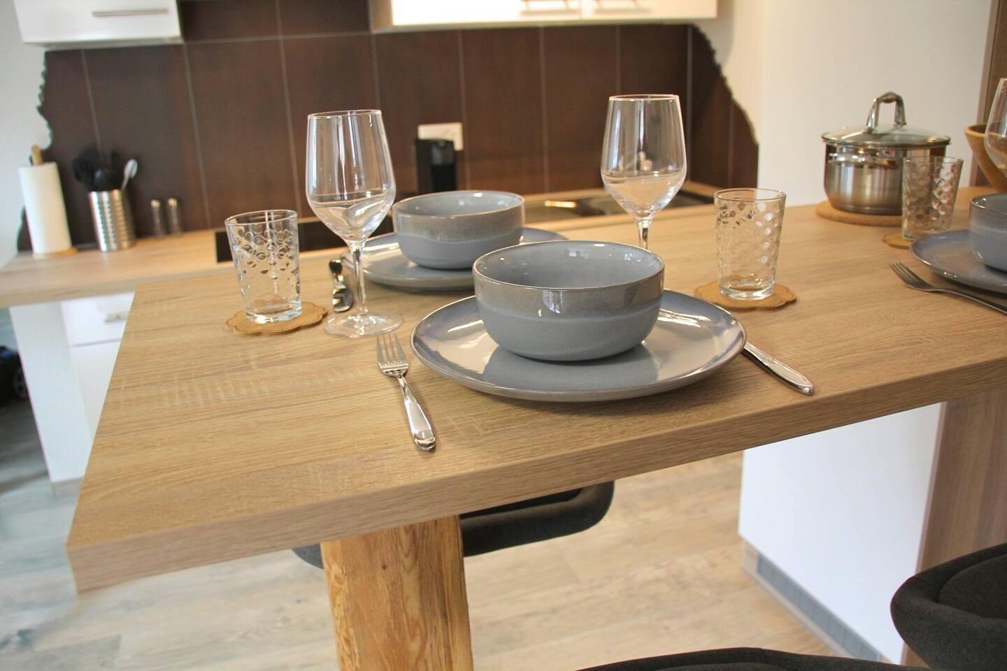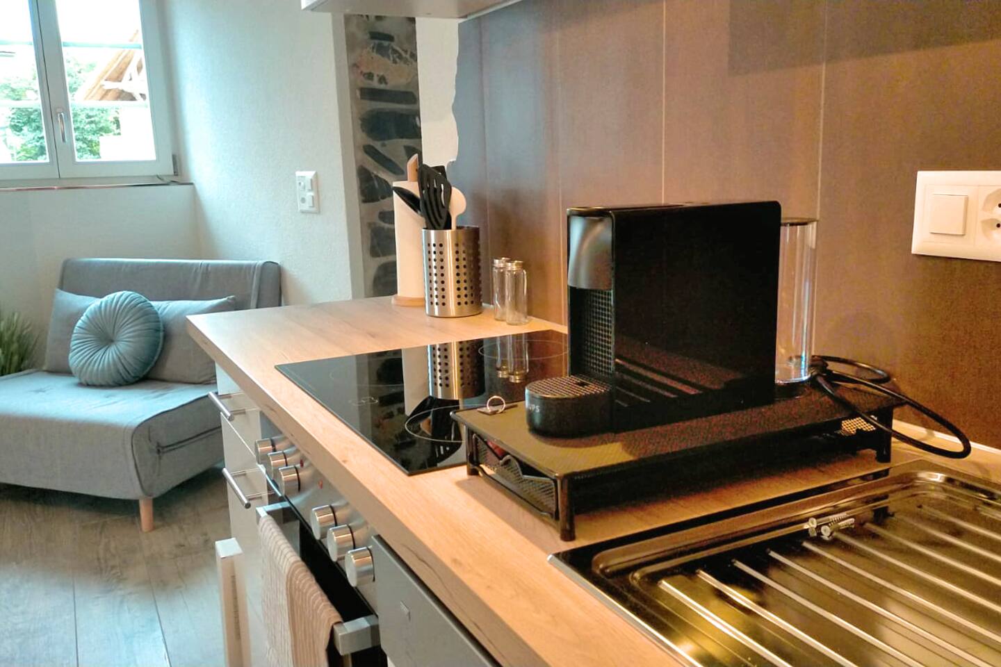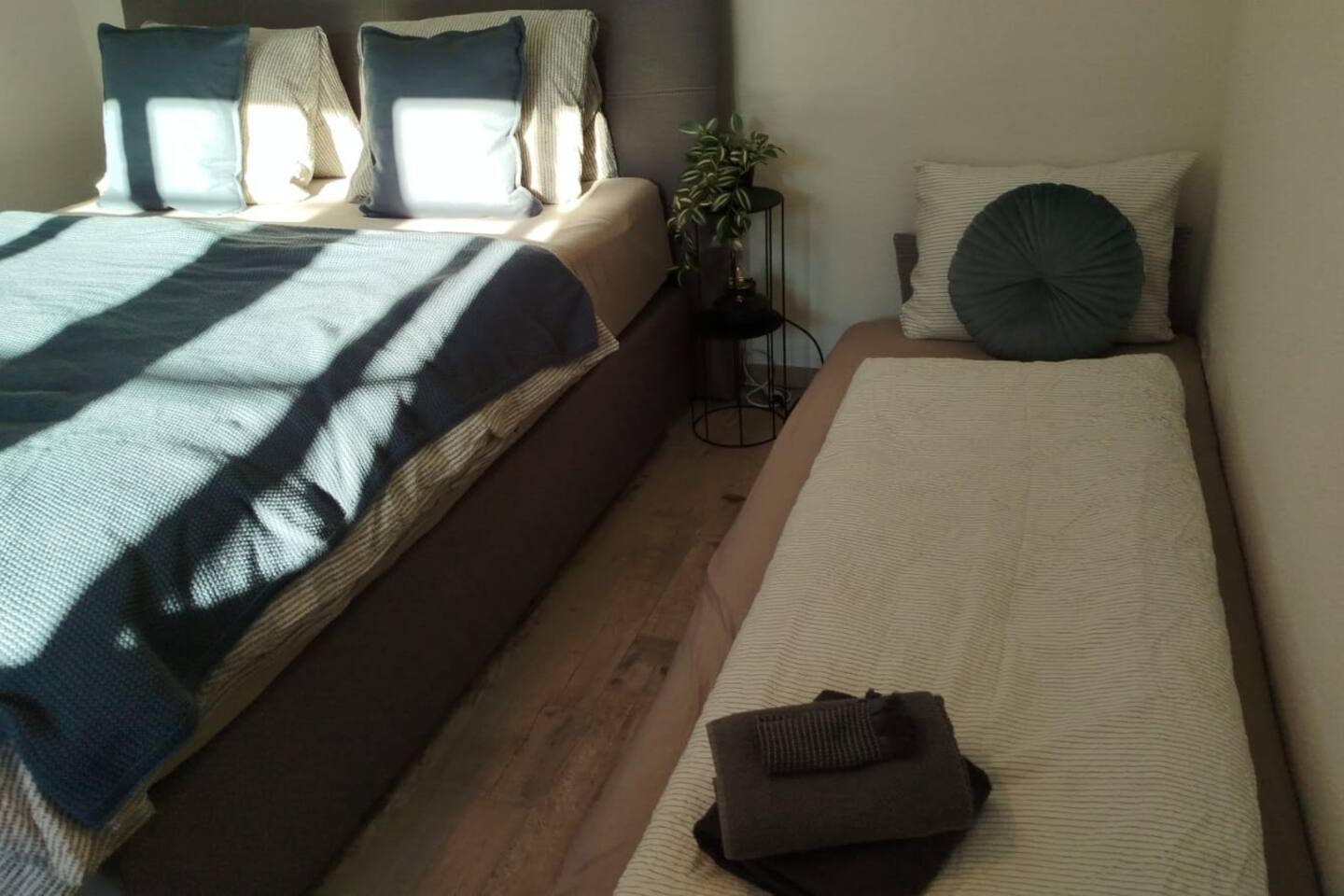 Wir stellen hochwertige Bettwäsche und Handtücher zur Verfügung. Außerdem erwartet dich ein Begrüßungsset mit Kaffee und Tee sowie ein kleines Pflegekit.