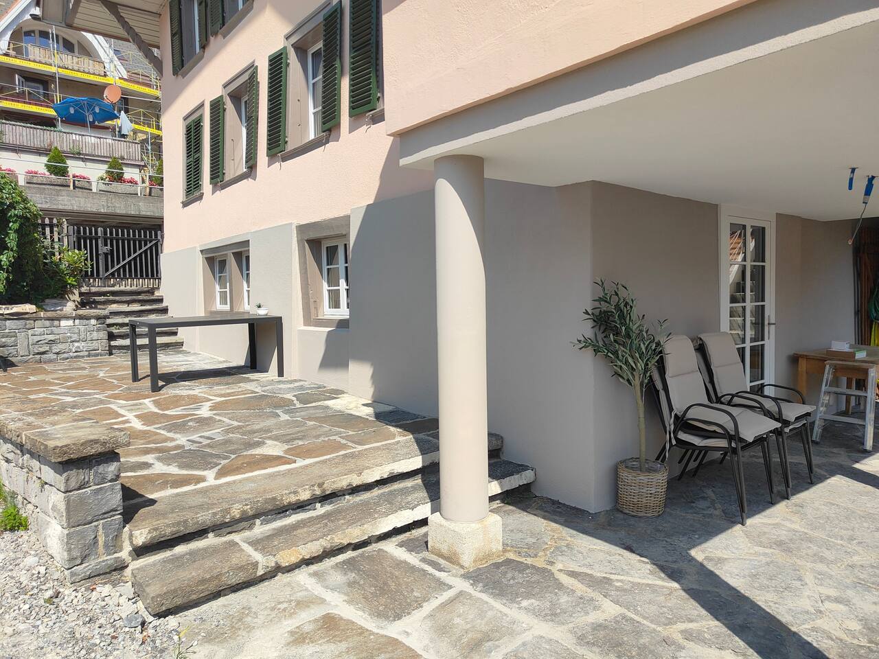 Du wirst den Ausblick von der Terrasse lieben und kannst deinen Tag mit einem Nespresso-Kaffee auf der Terrasse starten, wie keinen anderen. Das neu renovierte Apartment ist sehr hochwertig eingerichtet und verfügt über ein bequemes Queensize-Bett (1,60m breit) , einen Smart-TV und einer voll ausgestatteten Küche mit Herdplatten, Kühlschrank und allem was man braucht. Das Badezimmer verfügt über eine Dusche und einer Waschmaschine. Selbstverständlich stellen wir frische Handtücher und Badezimmer-Essentials bereit. Gerne können Sie während Ihres Aufenthalts Raclette zubereiten. Wir stellen Ihnen dafür ein Raclette-Gerät zur Verfügung, damit Sie das typische Schweizer Gericht in vollen Zügen genießen können. Die Lage des Apartments ist ideal: Du kannst dich auf Spaziergänge und Skiferien im Berner Oberland freuen.